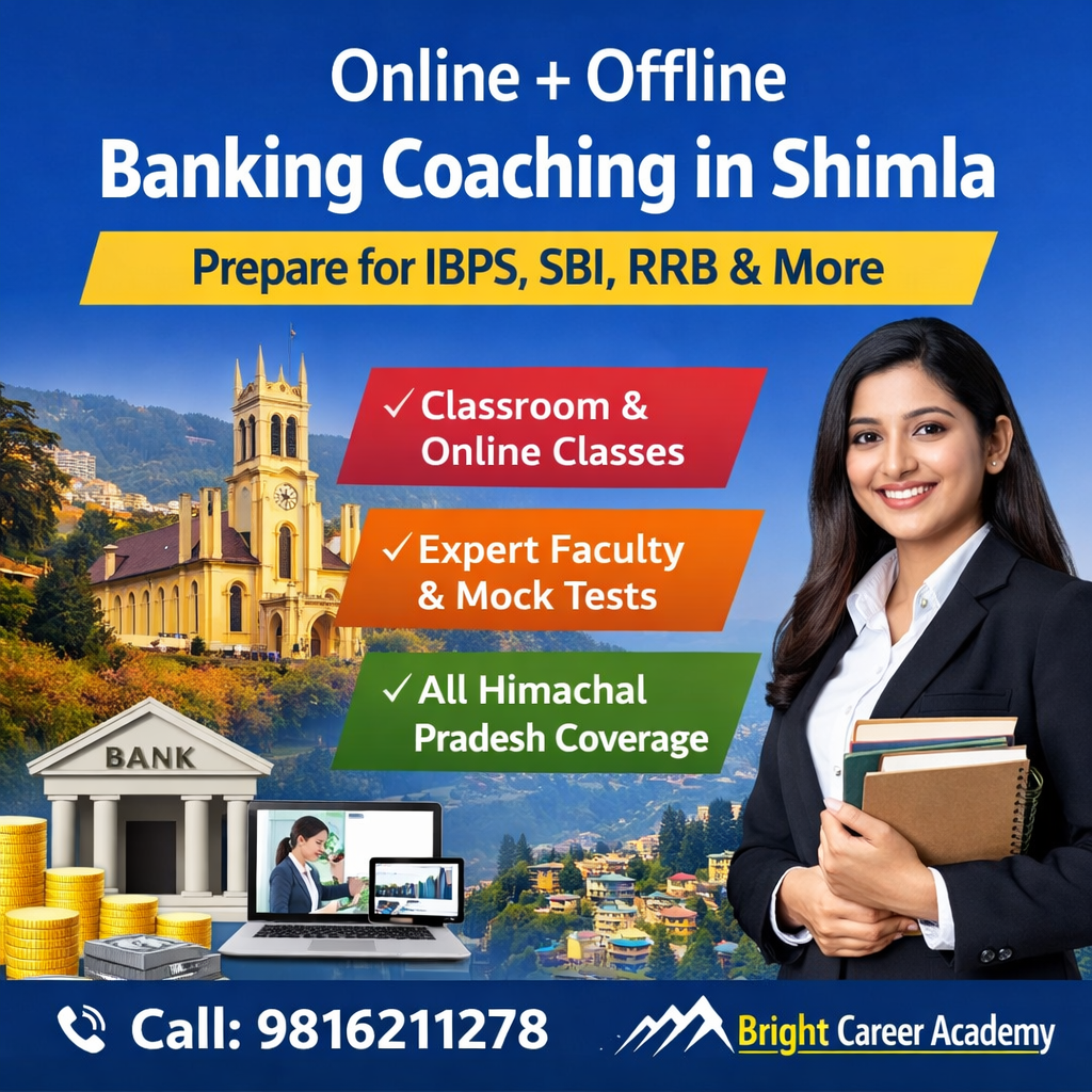 Bright Career Academy Shimla offers complete guidance, expert faculty, and a proven track record to help you achieve your banking career goals.