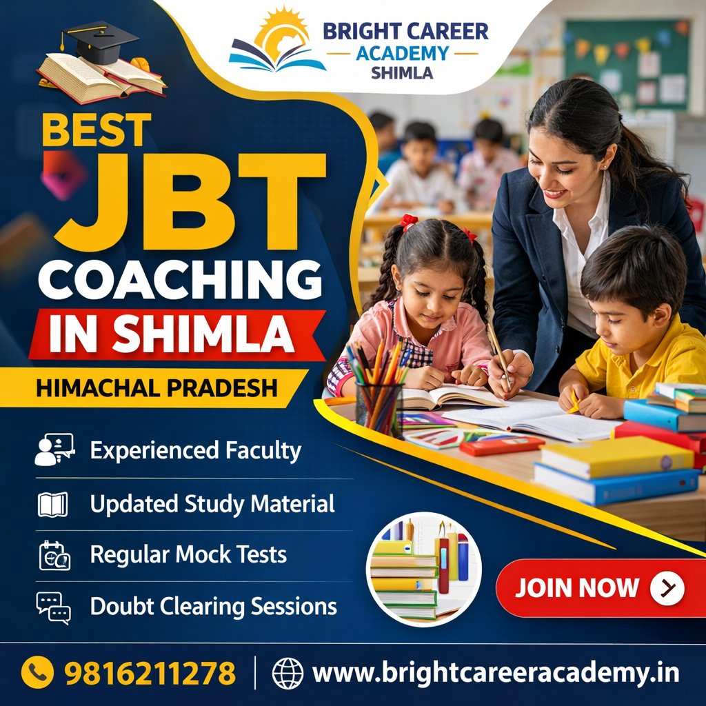 This detailed guide explains everything about JBT coaching in Shimla, exam preparation strategies, benefits of coaching, syllabus overview, and why Bright Career Academy is a trusted choice for teaching exam preparation in Himachal Pradesh.