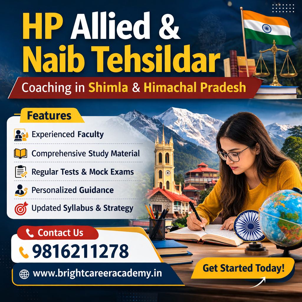 If you are searching for HP Allied coaching in Shimla, Naib Tehsildar coaching in Shimla, coaching centre near me, or best government exam coaching institute in Himachal Pradesh, Bright Career Academy Shimla provides expert guidance and structured preparation to help students achieve their goals.