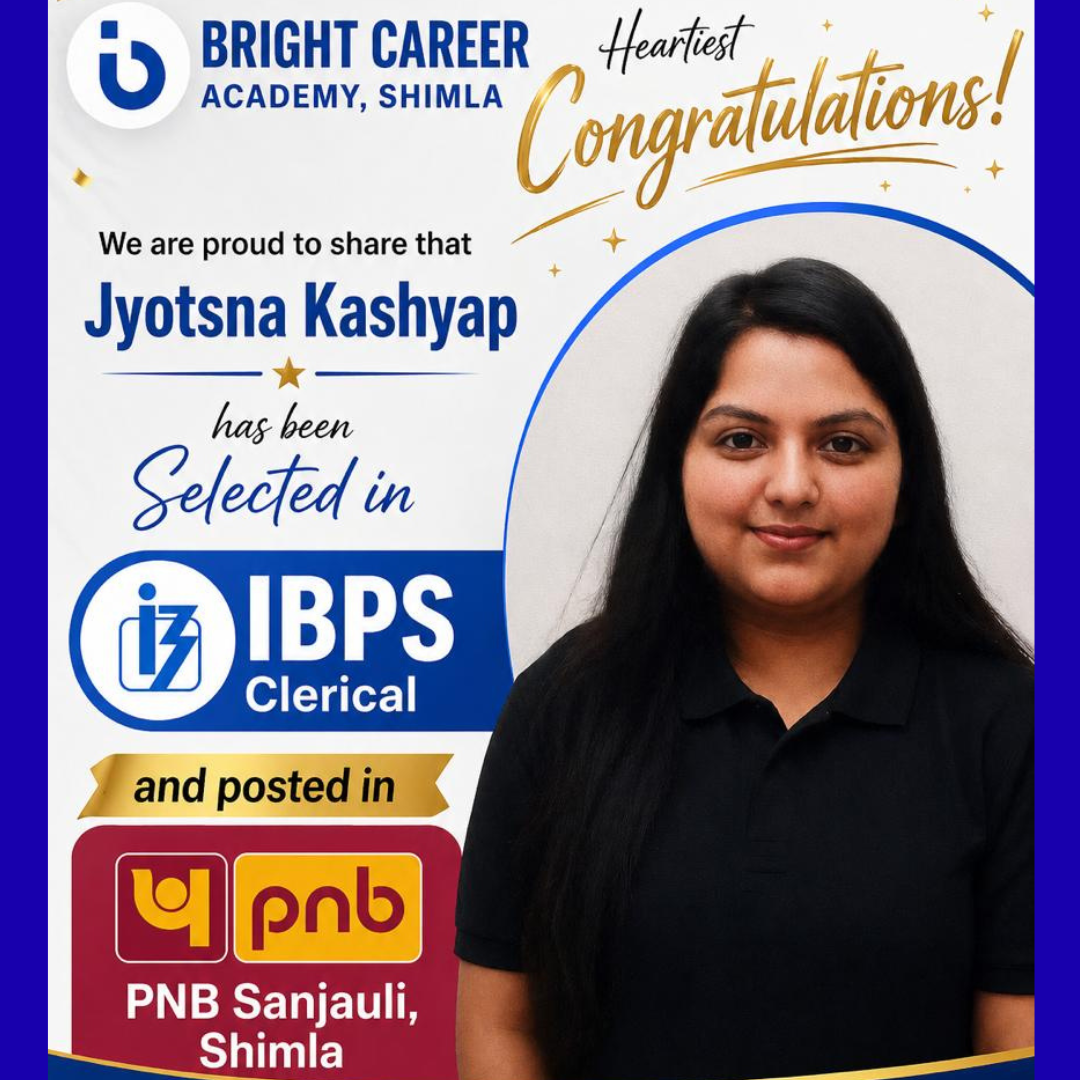 At Bright Career Academy Shimla, we proudly highlight our recent banking selection 2025–2026, where a dedicated student has successfully cleared the IBPS Clerk examination.