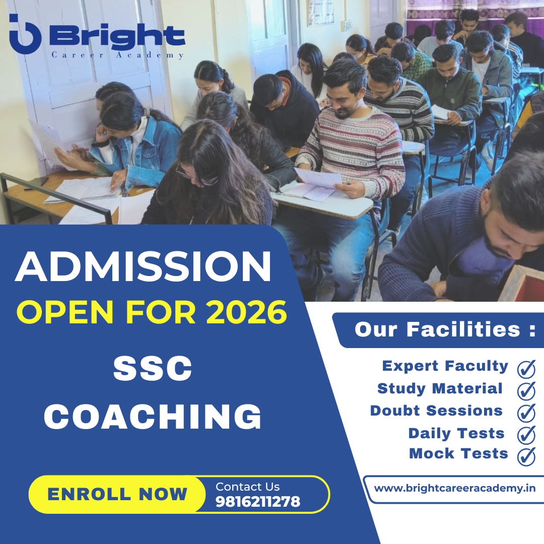 If you are planning to crack SSC exams such as CGL, CHSL, MTS, GD Constable, Stenographer, or CPO, then Bright Career Academy Shimla is one of the most trusted institutes helping students achieve their dream government job.
